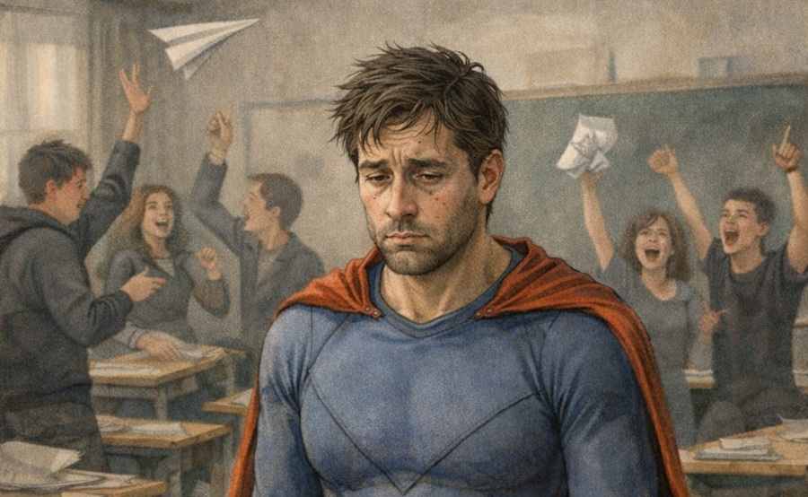 Pero todavía sigue costando mucho que nosotros mismos reconozcamos que ocurre algo muy grave en la enseñanza pública, y muchos de nosotros hemos asumido, a menudo de forma inconsciente, un complejo de superhéroe. Como Spiderman, asumimos que cada fracaso del alumno es responsabilidad nuestra: “si no sale adelante, es que no lo he hecho bien”. Como Superman, proyectamos una fortaleza constante, aunque el sistema nos someta a condiciones imposibles: aulas sin climatización, equipos informáticos que fallan o espacios demasiado pequeños para gestionar un grupo. Como Wonder Woman, ponemos recursos propios —horas, energía, dinero— y normalizamos la autoexplotación como compromiso profesional. Y así, capa tras capa, el límite entre trabajo y sacrificio personal se va borrando.